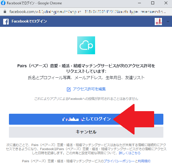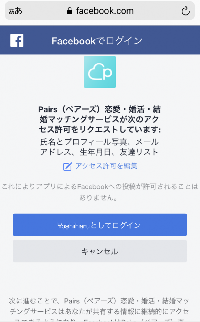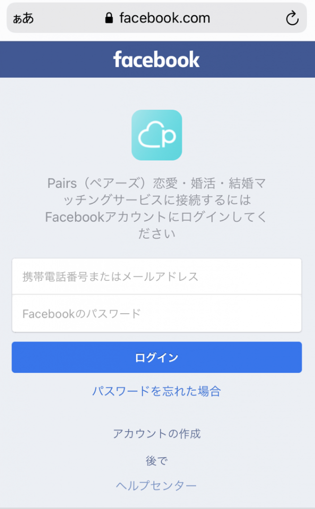 次にFacebookでペアーズに無料登録する方法を解説していきます。