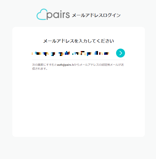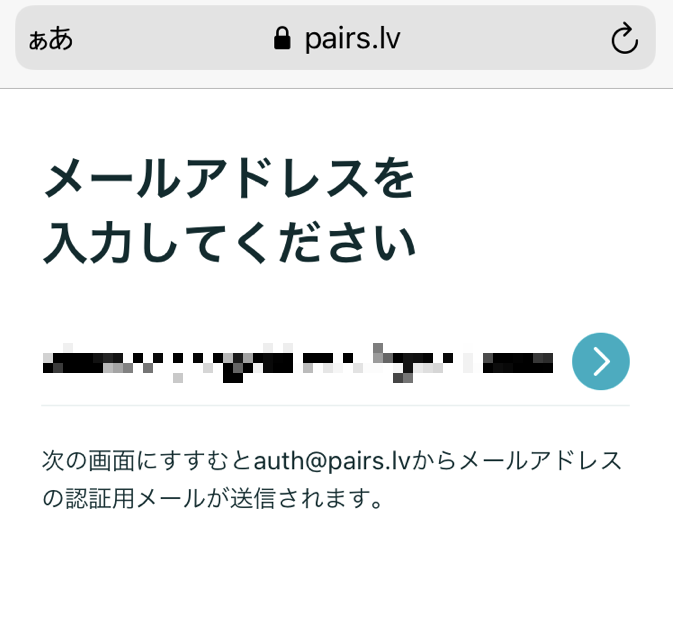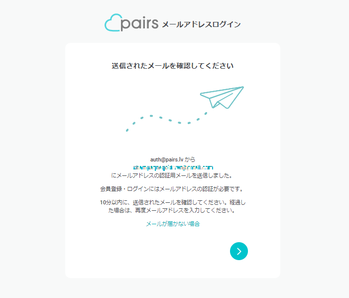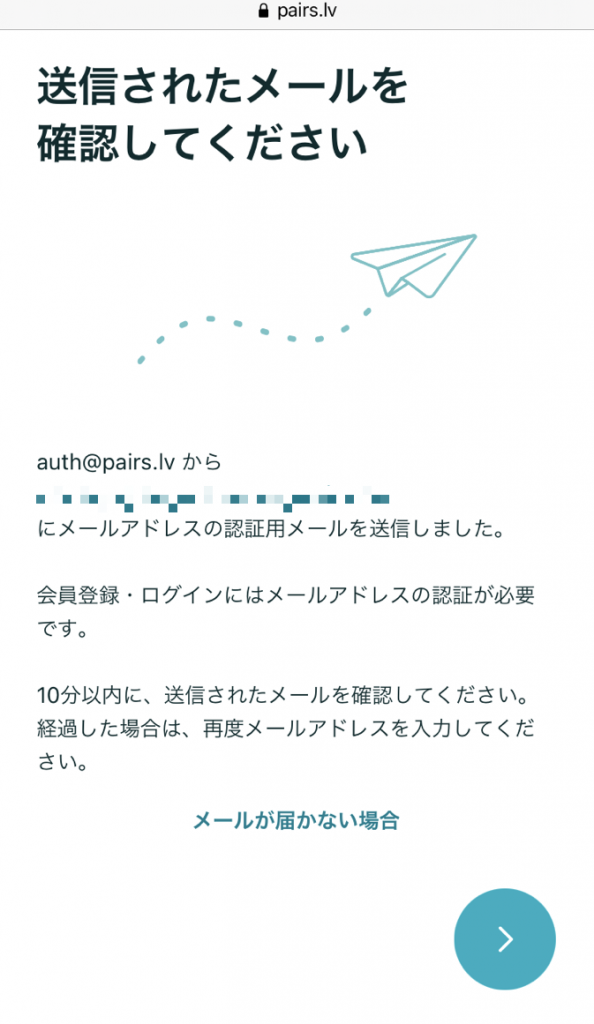 あなたが入力したアドレスへ、ペアーズからメールが届いていることを確認し「>」ボタンをクリックしましょう。