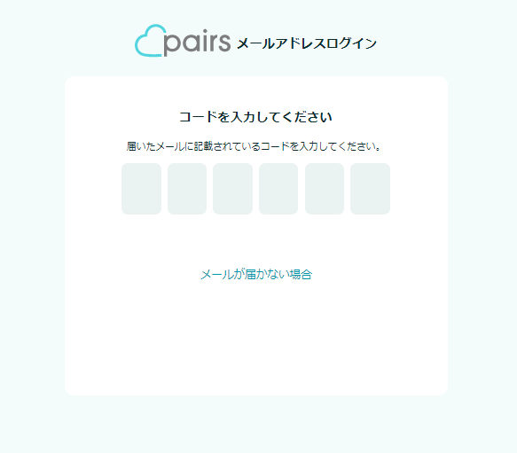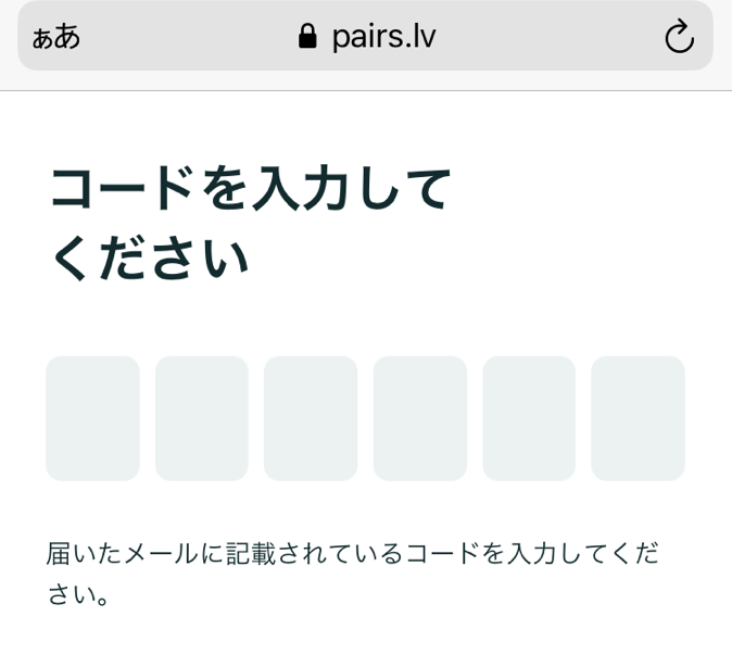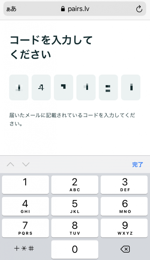 ペアーズからメールで届いた数字を正しく入力しましょう。