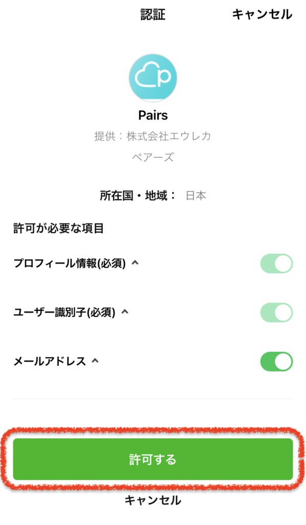 あなたのスマホにLINEがインストールされていれば、認証の画面に移り変わりますので、赤枠部分許可するをタップしてください。