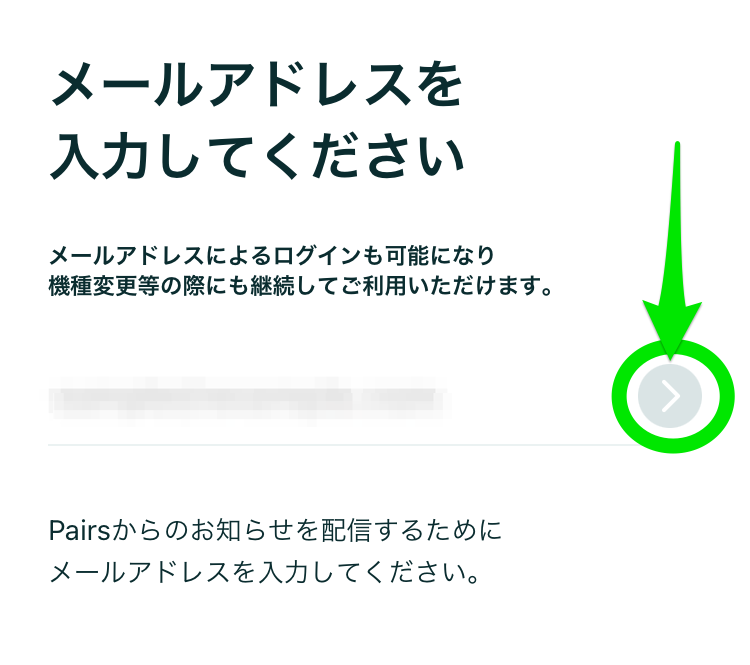 あなたのメールアドレスを入力して「>」ボタンをタップします。