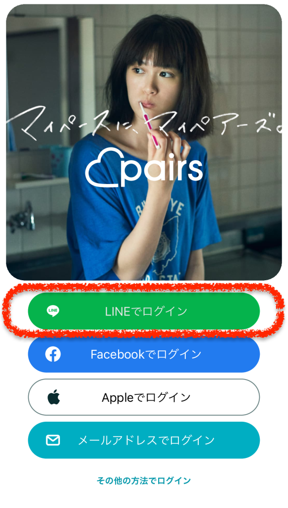 よければ赤矢印部分○○○(あなたのお名前)としてログインをクリックするとペアーズの画面に切り替わります。