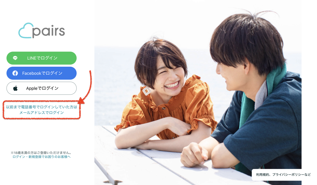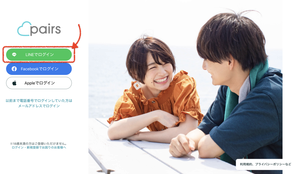 - ステップ1:18歳以上であることの確認(ペアーズはR18のため)