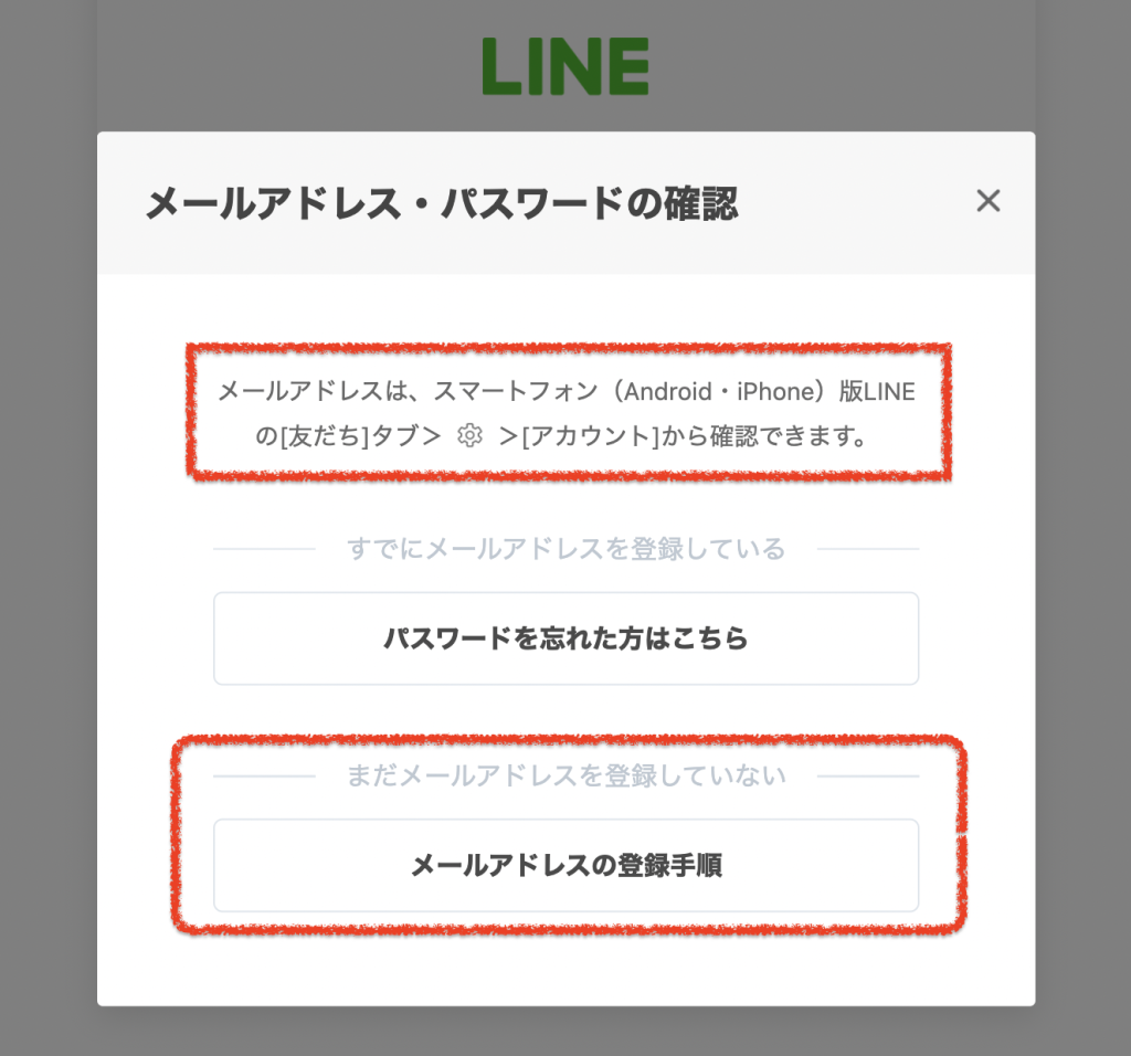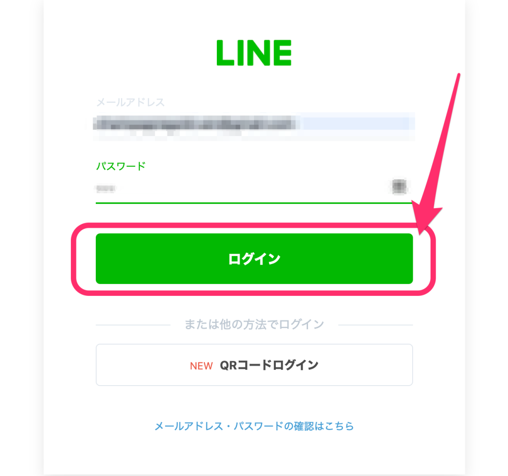 そうすると次の画面に切り替わりますので、LINEに登録したメールアドレスとパスワードを入力。